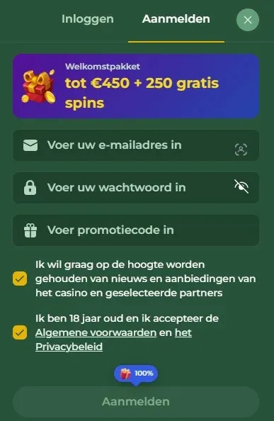 - Ga akkoord met de algemene voorwaarden en bevestig dat je ouder dan 18 jaar bent.